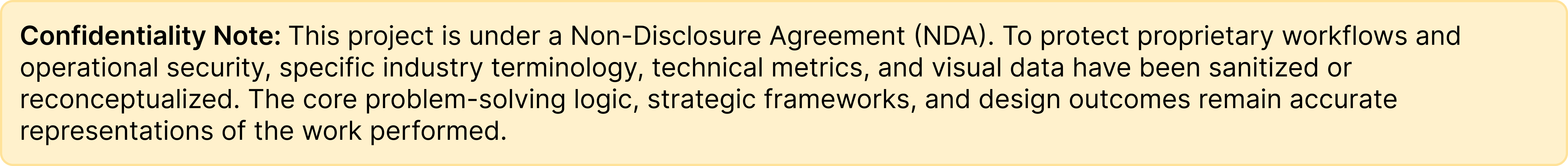 What worked: The decision to do contextual, task-based interviews rather than survey-style research was critical. Engineers were used to being asked what they "need" — and they'd give you a wishlist. Watching them work surfaced what they'd stopped noticing was broken.